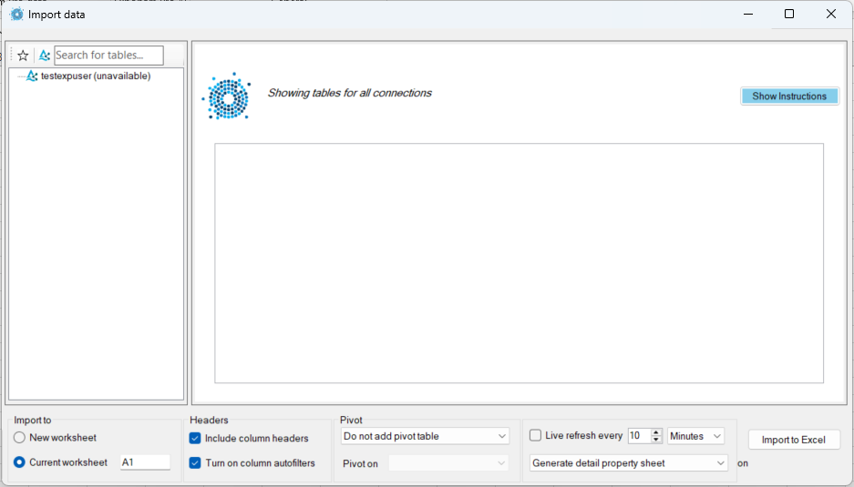 The import data window then comes up and your data share reads (unavailable).