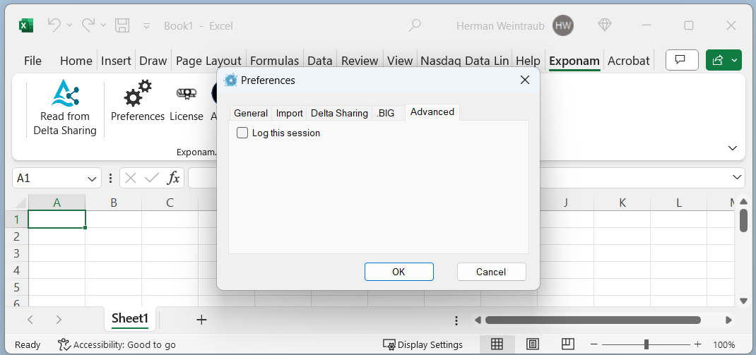 - Open File Explorer and navigate to your home directory (usually in C:/Users/<your name>). Open the “.exponamExcelAddIn” directory. You will see a file "SessionLog.txt"
